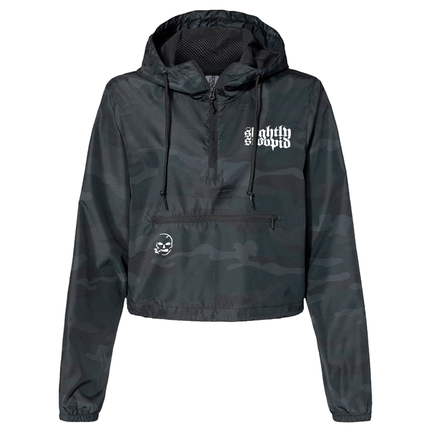 Ladies Smoking Skull Quarter-Zip Camo Windbreaker